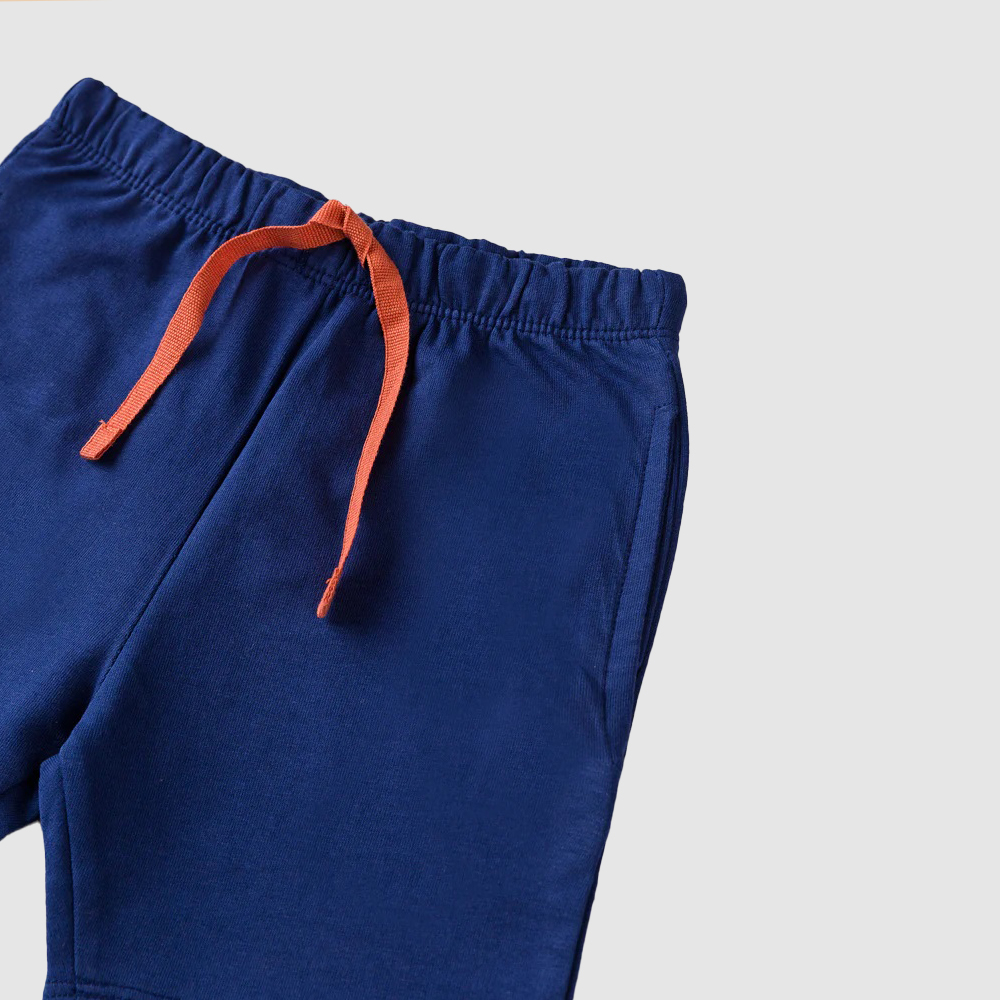 Let your little one explore the world in style with this adorable Boys Blue Vehicle Print T-Shirt and Shorts Set. Designed for comfort and play, this summer-ready outfit includes a bright blue short-sleeve T-shirt decorated with colorful vehicle graphics—featuring cars, trucks, trains, a helicopter, and a digger. The matching navy blue shorts come with an elastic waistband and an orange drawstring for a snug, adjustable fit.