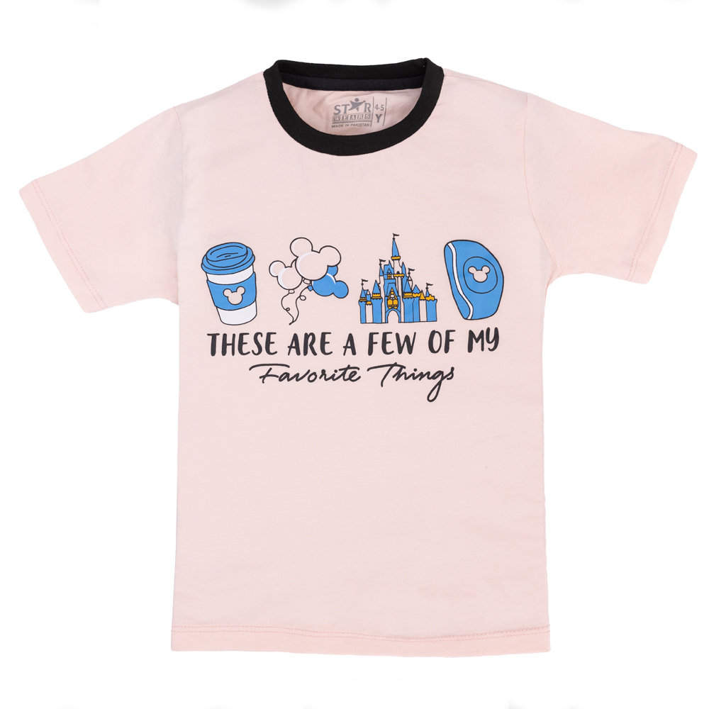 Kids’ Pink T-Shirt with “Favorite Things” Graphic and Cartoon Icons